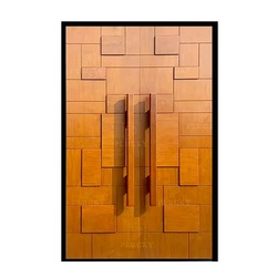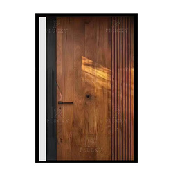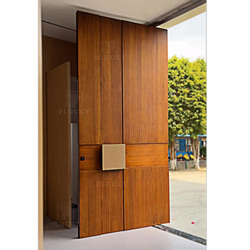Casa de Villa de estilo minimalista, entrada principal, puerta abatible, puerta pivotante de entrada de Metal de aluminio de Color madera con luz lateral de vidrio