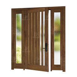 מותאם מים מותאם אישית להוסיף סגנון מודרני מזג זכוכית הבית מול דלת עץ עם שני sidelights