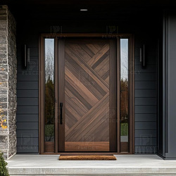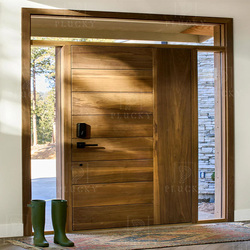 חזית עיצוב וילה בעיצוב מודרני דלת כניסה מעץ מלא דלת כניסה ראשית דלת עץ עם טרנסום זכוכית למגורים